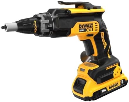 The 20V MAX* XR Brushless Drywall Screwgun is a cordless solution for installing drywall and uses the same battery and charger as your other 20V MAX* tools. This cordless screwgun provides greater speed than the DW272 corded screwgun, with up to 4,400 RPM. The nose cone locks on securely and can be adjusted to 3 different screw depths. To drive screws more quickly, use the compatible DCF6201 Collated Magazine Attachment with this screwgun.
